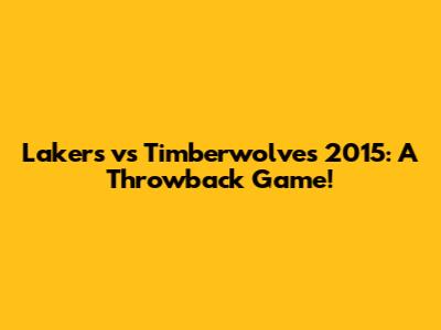 Lakers Vs Timberwolves 2015: A Throwback Game!