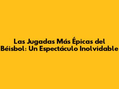 Las Jugadas Más Épicas Del Béisbol: Un Espectáculo Inolvidable